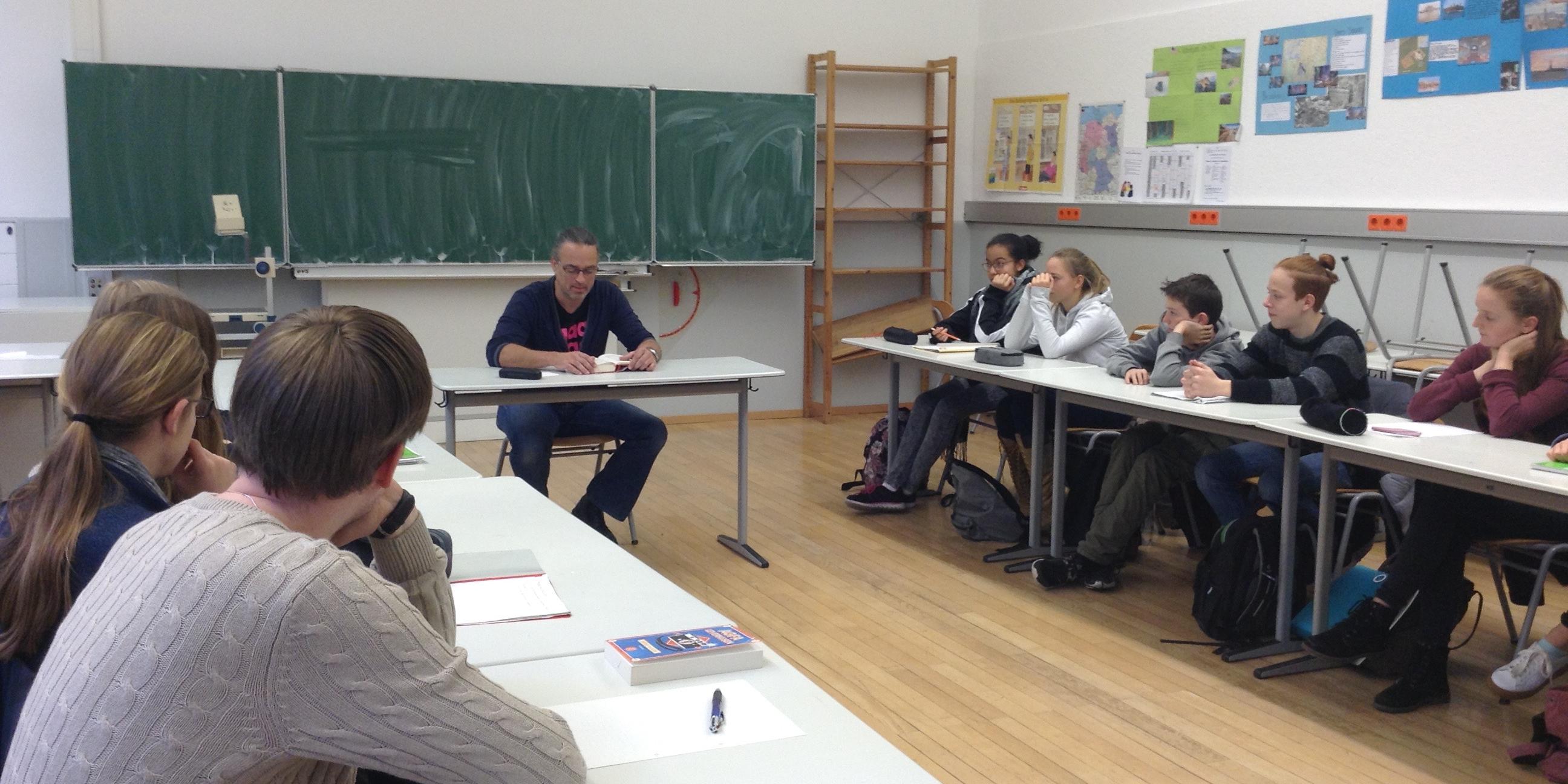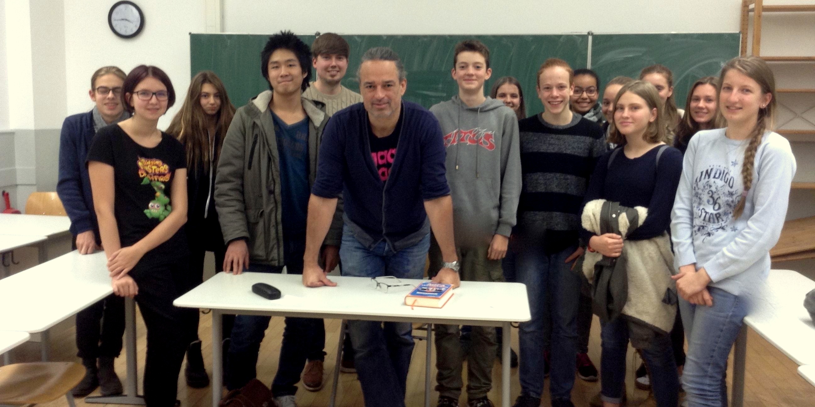 Am 22.11. besuchte der Schriftsteller Boris Hillen die AG "Literarisches Schreiben" von Herrn Kuch, die ein Literaturprojekt zum 125-jährigen Jubiläum des ersten Mädchengymnasiums in Karlsruhe erstellt. Hillen, dessen letzter Roman "Agfa Leverkusen" im Fischer Verlag erschienen ist, las zunächst daraus vor und beantwortete dann ausführlich die Fragen der Schülerinnen und Schüler. Dabei interessierte es sie besonders, wie Figuren gestaltet werden, welchen Einfluss Autobiographisches dabei hat oder wie einzelne Passagen bearbeitet oder ob sie gar ganz ersetzt werden. Für ihren eigenen Schreibprozess gab es viele interessante Ansatzpunkte.