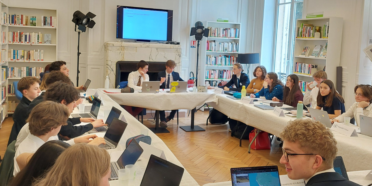 Vom 11.-12. April 2024 nahm wieder eine Delegation von 12 Schülerinnen und Schülern an diesem herausfordernden Planspiel teil, das darin besteht, eine Sitzungsperiode der Vereinten Nationen in New York zu simulieren. Jede und jeder vertritt ein anderes Land (nicht Deutschland!) in einem der in den VN existierenden Komitees, z.B. OMC, UNHSC, UNESCO, UNICEF, etc. um das gegebene Thema zu diskutieren.