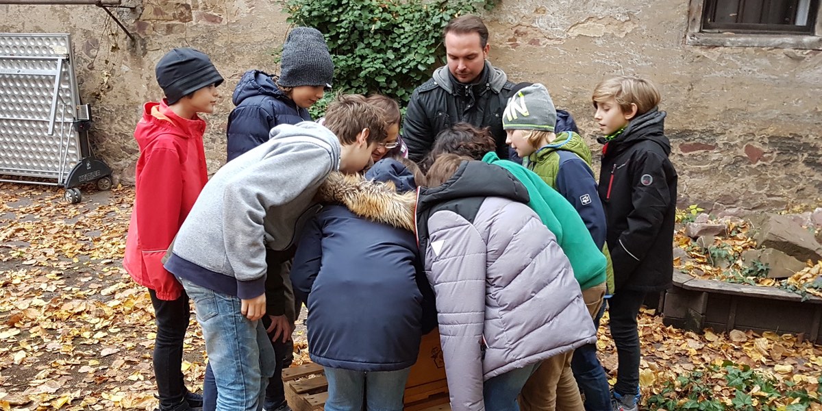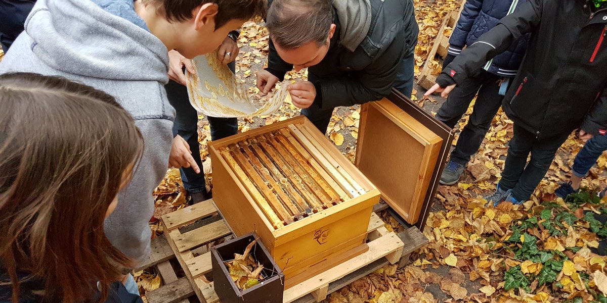 In der Bienen-AG lernen wir, wie Bienen leben, man sich um sie kümmert, man sie schützt und vieles mehr. Wir haben auch einen eigenen Bienenstock, der im „Grünen Klassenzimmer“ steht. Mit Hilfe der Organisation „Bee my world“ (*1) kümmern wir uns um den Bienenstock. So lernen wir die Aufgaben eines Imkers kennen. Im Winter ruhen die Bienen, deshalb haben wir zur Zeit mehr Theorie. Trotzdem wird es uns nicht langweilig, denn wir bauen im „Wald-Klassenzimmer“ Wildbienen-Hotels. Ich finde es toll, dass wir in der Bienen-AG das Leben eines Imkers in der Praxis kennenlernen und versuchen mitzuhelfen, dass die Bienen nicht von unserem Planeten verschwinden.