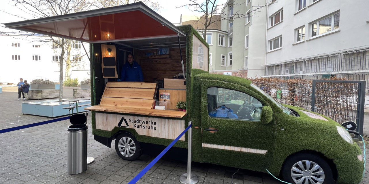 Im Anschluss an den Vortrag beteiligten sich die Schülerinnen und Schüler an einem Quiz, bei dem sie tolle Preise gewannen wie beispielsweise Eintrittstickets für den KSC, das Europabad oder auch eine JBL-Lautsprecherbox. Außerdem erhielten sie eine Waffel aus dem äußerst stylischen Energiemobil, das im Schulhof neben der Mensa geparkt war.