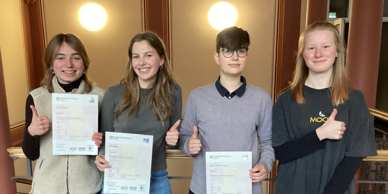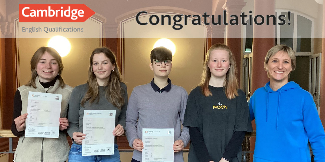 Nach einjähriger Vorbereitung in der Cambridge-AG meldeten sich im Juli 2024 fünf TeilnehmerInnen zur Prüfung für das „Certificate in Advanced English“, deren Bestehen den SchülerInnen das Sprachniveau C1 in der Fremdsprache Englisch bescheinigt.In einem kleinen Erfahrungsbericht könnt ihr nachlesen, wie es den Prüflingen so ergangen ist.
