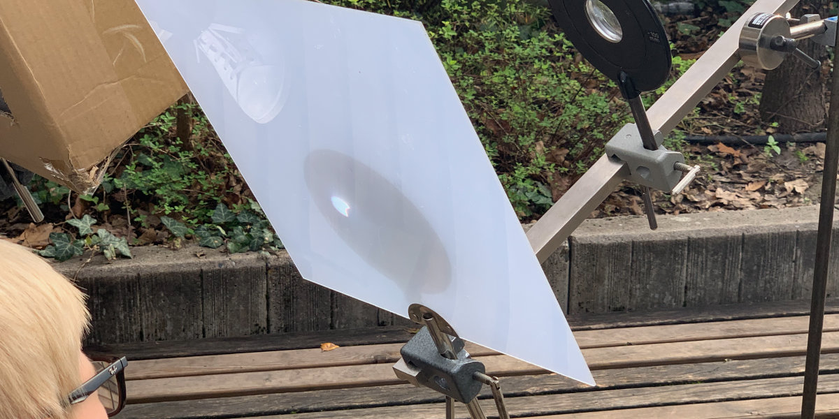 Es war sehenswert - sowohl die Projektion als auch das Interesse der Fichte-Schülerinnen und -Schüler, die sich um die aufgebauten Beobachtungsstationen scharrten. Physik live und in Farbe. Vielen Dank an Herrn Löhlein, der sich die Mühe gemacht hat, die Apparaturen aufzubauen und mit erklärenden Worten zur Seite stand.