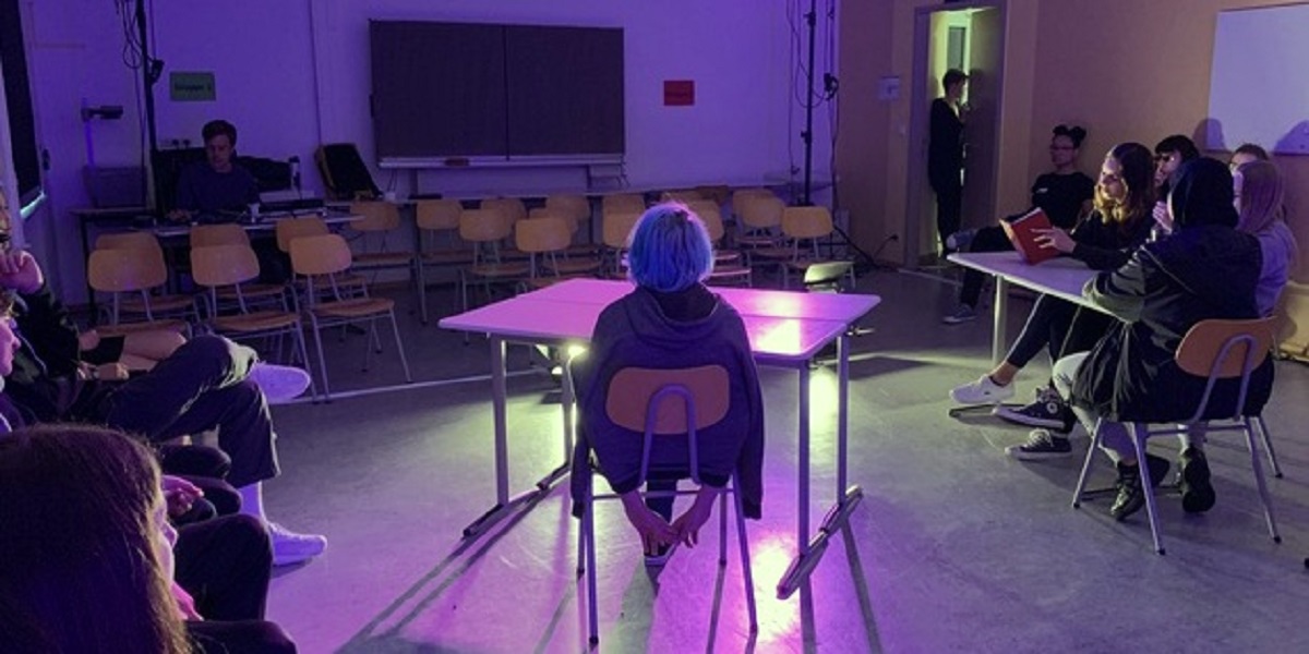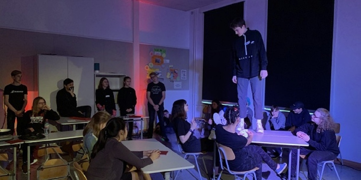 Die Klasse 10c verfasste unter professioneller Anleitung von Anne Britting (Junges Staatstheater Karlsruhe) und Klaas Bartsch (Hildesheim) Szenen,