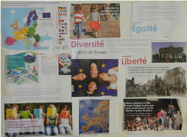Europa-Plakat, zusammengestellt aus Materialien der „Europe directe- Mappe“ in Strasbourg