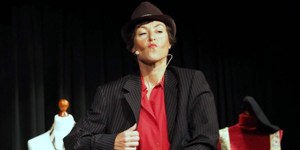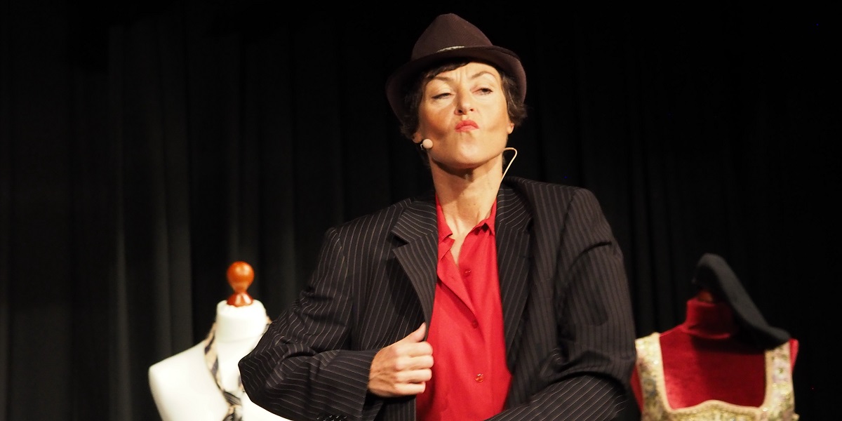 Eine leere Bühne mit einem schwarzen, hohen Stuhl als einziger Requisite. Schwarze Vorhänge. Die Schauspielerin Nathalie Cellier, die einzige des Abends, in schlichter Kleidung: schwarzer Pullover, weiße Hose, Lederschuhe. Die Requisiten: ein Stück Schnur, ein Feuerzeug, ein Revolver. Und das soll für eine Vorstellung von 70 Minuten tragen?!
