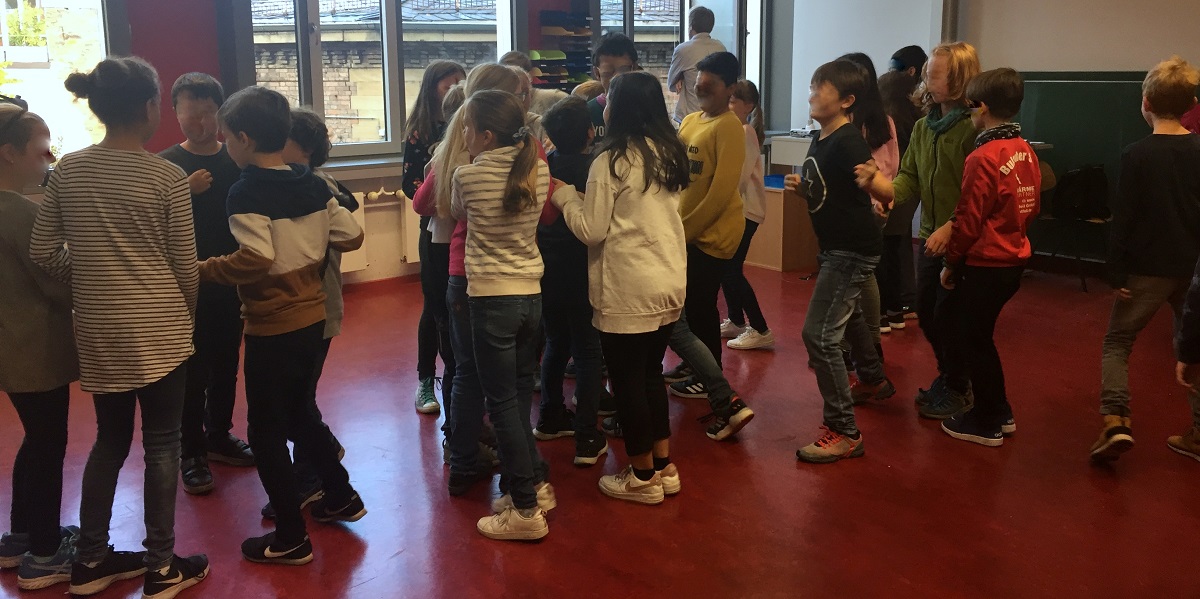 Im Rahmen unseres Sozialcurriculums kam der Theaterpädagoge Rob Doornbos von Theaterland Karlsruhe in die 5. Klassen, um mit theaterpädagogischen Mitteln die Klassenfindung, das Zusammenwachsen der Klasse, zu unterstützen. Im Fokus dieses spannenden Projektes, das von unserer Sozialpädagogin, Frau Kathrin Kaiser, und den jeweiligen Klassenlehrerteams der 5. Klassen einen Tag lang begleitet wurde, stand vor allem das Gemeinschaftserlebnis.