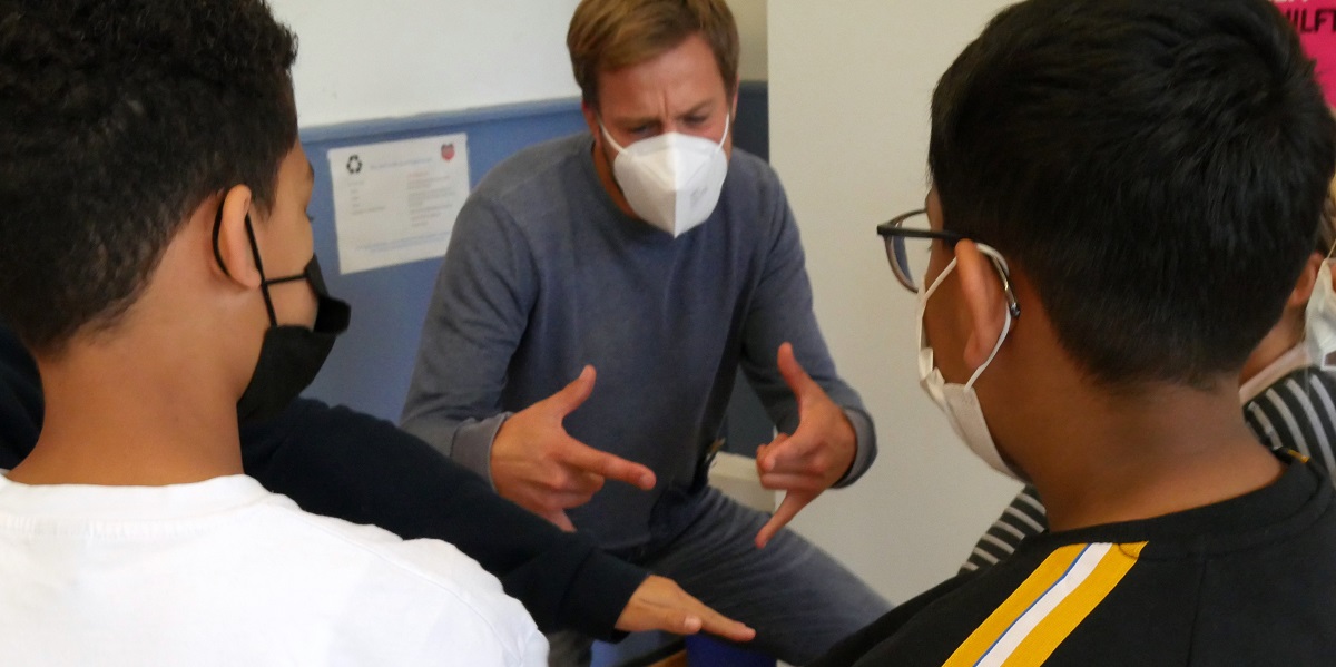 In der vergangenen Woche war der niederländische Theaterpädagoge Rob Doornbos von Theaterland Karlsruhe im Rahmen unseres Sozialcurriculums bei unseren neuen 5ern zu Gast. Im Fokus standen vor allem das Gemeinschaftserlebnis und Teambildung. Er zeigte ihnen, wie man gegen einen Holländer verliert, was ein Riesenspaß war (übrigens hat er nicht immer gewonnen). Als Höhepunkt erarbeiteten sich die Sextaner schließlich eine kleine Szene zum Thema „Verzicht“ und die Ergebnisse ließen nicht nur den guten Rob staunen. Alle haben sehr viel zu den Themen Vertrauen, Teamwork, Zuhören und Konzentration gelernt. Die nächsten 5er dürfen sich schon darauf freuen.
