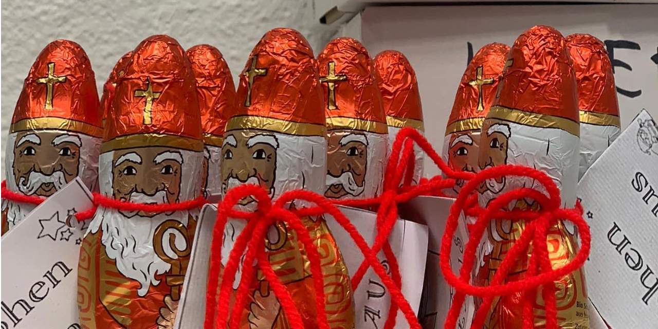 An Nikolaus organisierte der AKtion der SMV einen Nikolausverkauf. Um die 500 Fair-Trade-Schokonikoläuse wurden im Voraus von unserer Schülerschaft gekauft und an Freundinnen und Freunde sowie Lehrerinnen und Lehrer verschickt. Dieses Jahr konnten nicht nur schulintern, sondern auch extern, Nikoläuse an Karlsruher Nachbarschulen verschickt werden.