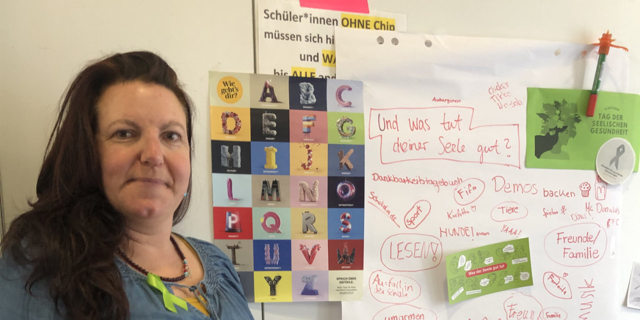 Auch im Lehrerzimmer gab es ein interaktives Plakat mit dem Titel „Was der Seele gut tut“.