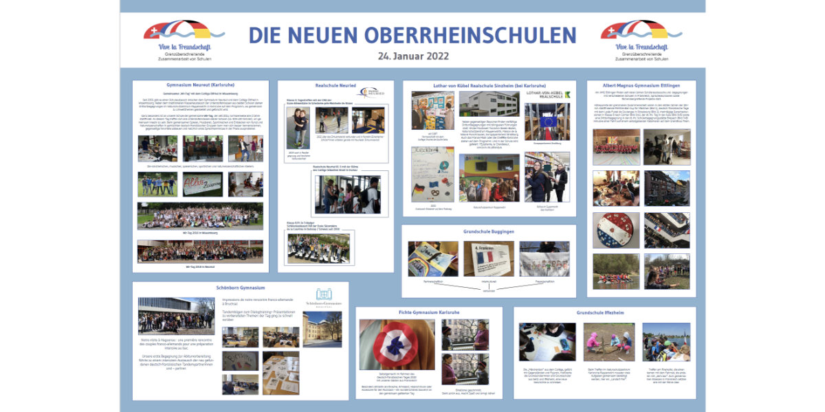 Das Land Baden-Württemberg zeichnete acht weitere Schulen anlässlich des 19. Deutsch-Französischen Tages am 24. Januar 2022 mit dem Oberrheinsiegel aus – leider per Videokonferenz und nicht wie ursprünglich geplant im Europa-Parlament. Das Zertifikat ist auf Initiative der Arbeitsgruppe Erziehung und Bildung der deutsch-französisch-schweizerischen Oberrheinkonferenz entwickelt worden und wird seit der Erstvergabe im Januar 2021 zum dritten Mal verliehen. Es würdigt die nachhaltige grenzüberschreitende Ausrichtung und Kooperation der Schulen und macht diese als vorbildliche Impulsgeber sichtbar.
