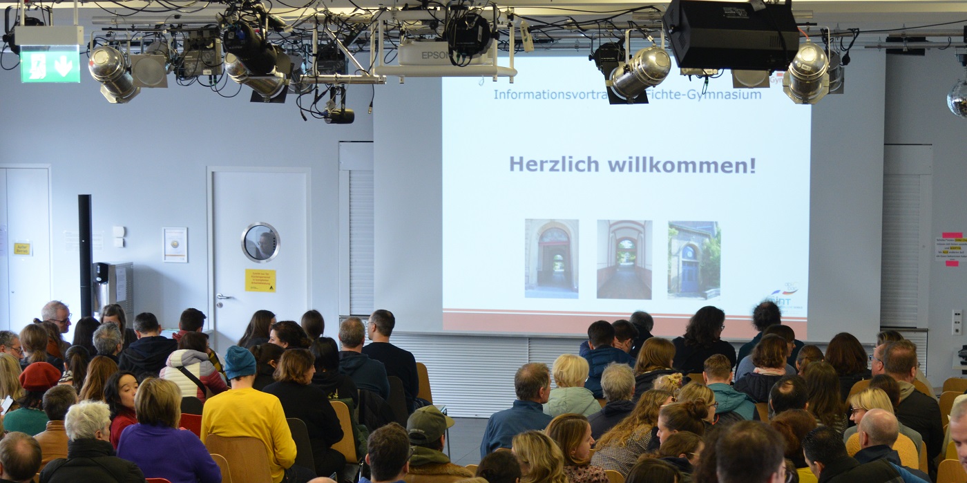 Am Samstag, den 15. Februar 2020, hieß die Fichte-Gemeinschaft zahlreiche motivierte 4. Klässler und ihre Eltern am Tag der offenen Tür auf das Allerherzlichste willkommen. Während interessierte Eltern an einer kurzweiligen Informationsveranstaltung unserer Schulleitung teilnahmen, gab es für unsere zukünftigen 5. Klässler ein vielfältiges Parallelprogramm. So konnten diese das Fichte-Gymnasium aktiv erleben. Bei einem geführten Rundgang erhielten sie einen Einblick in das Schulgebäude und konnten bereits erste Eindrücke ihrer neuen Lehrerinnen und Lehrer sammeln.