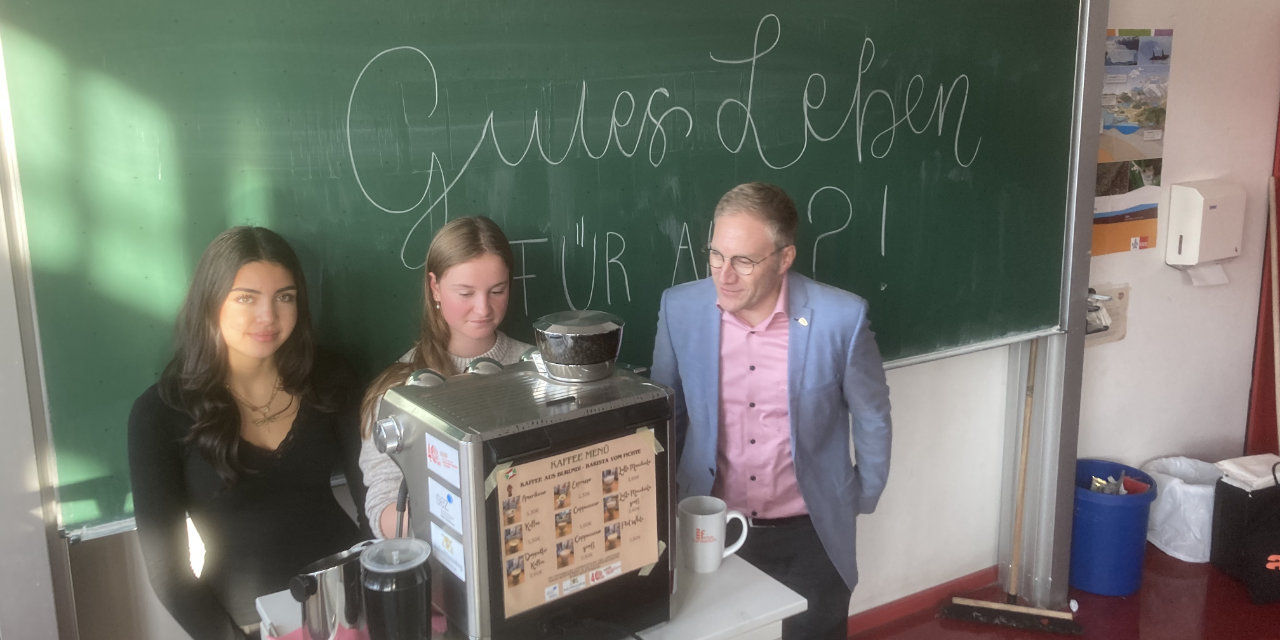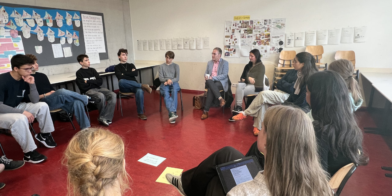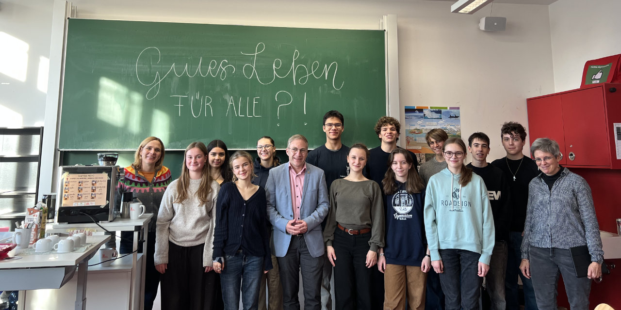 Am Donnerstag, den 6.11.2025 besuchte, im Rahmen des Seminarkurses ,,Gutes Leben für alle ?!’’, Sebastian Cuny, entwicklungspolitischer Sprecher der SPD, das Fichte-Gymnasium.