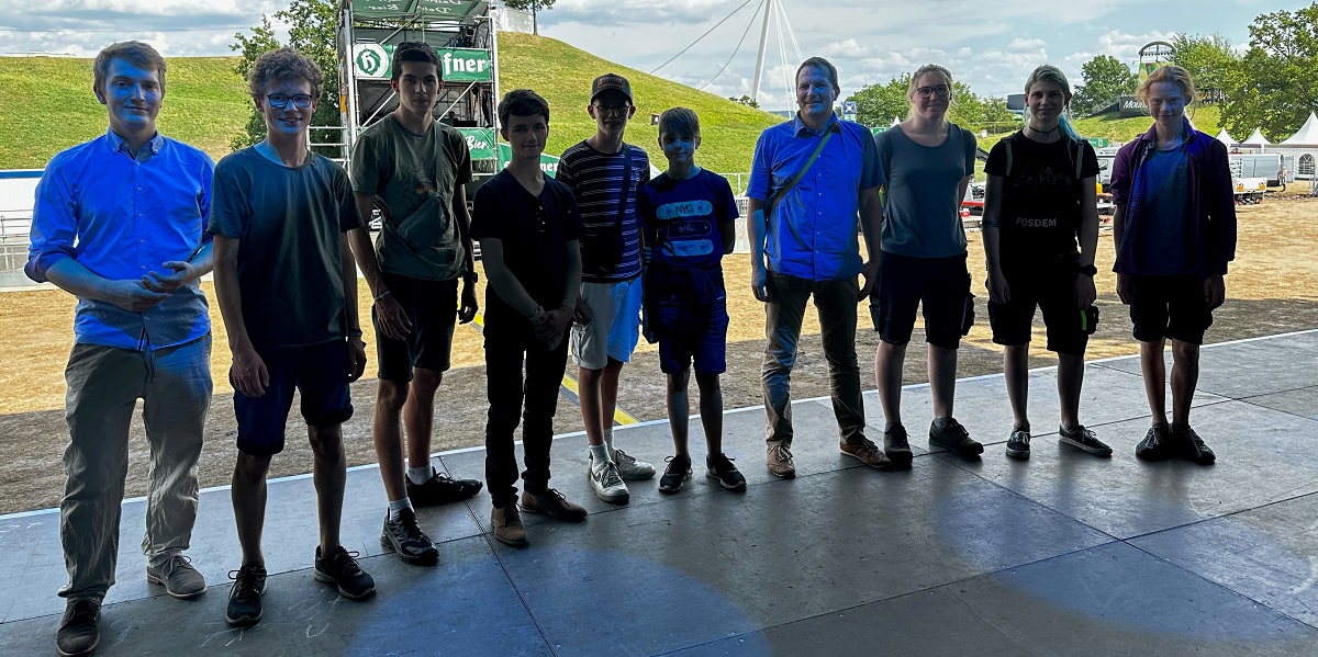 "Alles eine Nummer größer" - So lässt sich der Besuch der Technik-AG auf der Hauptbühne von "Das FEST" zusammenfassen. Geführt von Herrn Wahl, von der KME, haben wir vor der Bühne die ersten Töne aus der PA gehört, auf der Bühne gesehen, wie viele Scheinwerfer zusammenspielen, und unter der Bühne den Arbeitsplatz der Videotechnik kennengelernt. Die Schülerinnen und Shcüler haben begeistert alles aufgesogen, Herrn Wahl sowie die Veranstaltungstechniker dabei mit Fragen gelöchert und natürlich Vergleiche zwischen unserer Technik sowie der Technik bei "Das FEST" gezogen. Wie gesagt: "Alles eine Nummer größer." Süt