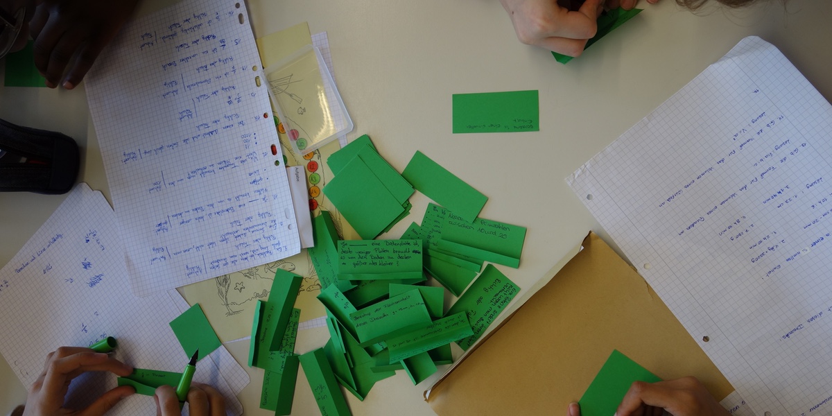 Inhalte mussten folglich nachgeschlagen und Lösungen niedergeschrieben werden. Zudem einigten wir uns in den Gruppen gemeinsam auf Spielregeln und schrieben diese übersichtlich auf.