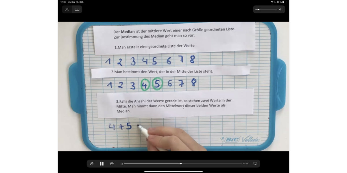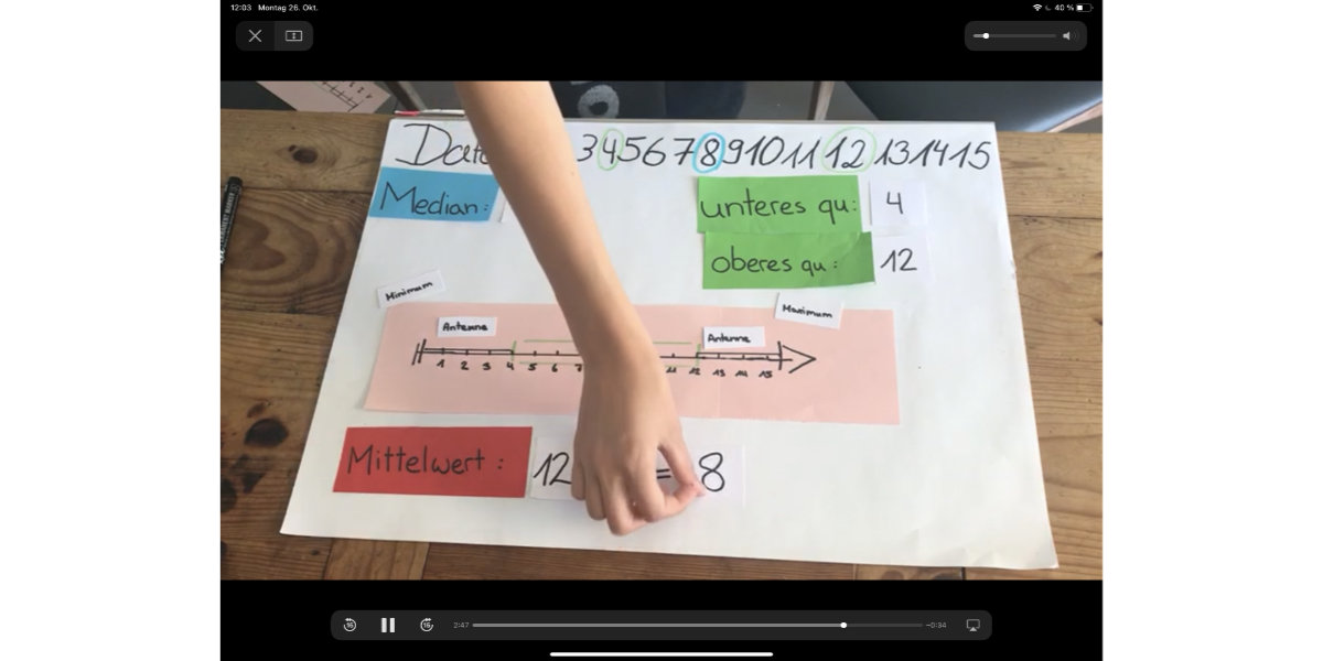 Wir tauschten unsere Ergebnisse aus und andere Gruppen aus der Klasse spielten die Spiele, lösten die Aufgaben, wiederholten die mathematischen Inhalte und gaben mittels eines vorgefertigten Testbogens individuell Rückmeldung zu den einzelnen Spielen.