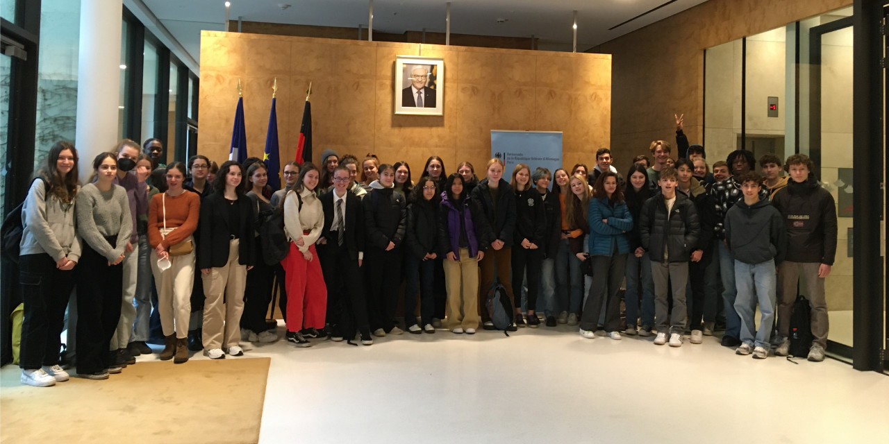 Nach einer Kurzführung durch das nach dem Künstler Nicolas Untersteller benannte Collège befassten wir uns mit einigen Kurzvideos in deutscher und französischer Sprache mit dem Ereignis, das Austausche wie diesen überhaupt erst möglich gemacht hat: Dem Elysée-Vertrag, der vor 60 Jahren, am 22.01.1963 unterzeichnet wurde.