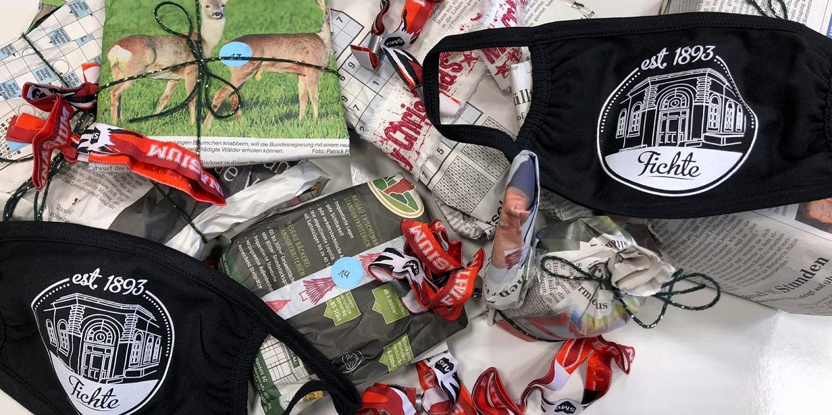 Im Laufe des Dezembers verschenken wir jeden Schultag einen Hauptpreis und drei Fichte-Bändchen. Als Hauptpreis können unter anderem Kerzen und Lichterketten, aber auch Kanugutscheine, gewonnen werden. Besonders freuen wir uns verkünden zu dürfen, dass wir in der letzten Schulwoche fünf Mund-Nasen-Bedeckungen aus unserer eigenen Schulkollektion, gesponsert von der Firma Schushi, zu verschenken haben.