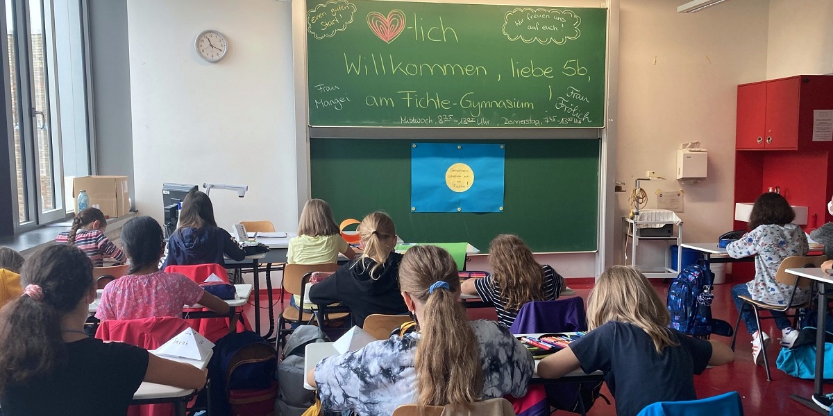 Am Dienstag, den 14.9.2021, wurden die neuen Sextaner (unsere Fünftklässler) von unserem Direktor Herrn Wehrmann am Fichte herzlich empfangen. Wie im letzten Jahr wurden die Schülerinnen und Schüler wegen der Corona-Regeln klassenweise im Schulhof begrüßt. Es gab Fächer zu erraten, man lernte neue Mitschülerinnen und Mitschüler kennen und die neuen Klassenlehrerteams konnten schon mal begutachtet werden. Bei herrlichem Wetter konnten sich die Eltern dann beim Kaffee-und-Kuchen-Angebot des Fördervereins im Schulhof in der Sophienstraße 2 kennenlernen. Man hörte viel Lob für das Konzept der Einschulung als "warmer Empfang", neue Kontakte konnten geknüpft werden und man sah viele lachende Kindergesichter – das alles machte den Tag zu einer gelungenen Veranstaltung.
