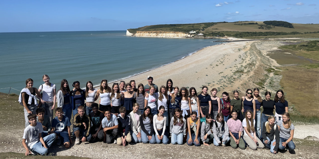 Am Anfang des Schuljahres versprach Herr Wehrmann uns wie allen 5ten Klassen einen Ausflug auf die Dachterrasse. Dies machte er am 10.07.2025 wahr. Wir gingen durch den Anbau und an unserer Schulbibliothek vorbei hoch auf die Dachterrasse. Herr Wehrmann erklärte uns viele spannende Dinge. Er zeigte uns, in welcher Richtung sich das Wildpark Stadion, das Karlsruher Schloss und die anderen Gymnasien befinden. Von dort oben sah man die ganze Stadt. Wir haben viele schöne Bilder gemacht, um uns immer wieder an diese tolle Zeit zu erinnern.